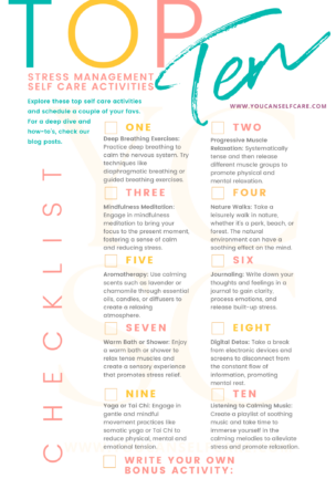 Get self care ideas, quotes, tips, checklists and more plus this printable activity checklist, straight to